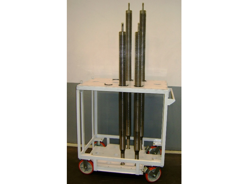 Carrinho para transporte de brochas e outras ferramentas mais complexas como trens de fresa e cabeçotes de fresas também podem ser fabricados como construção especial.